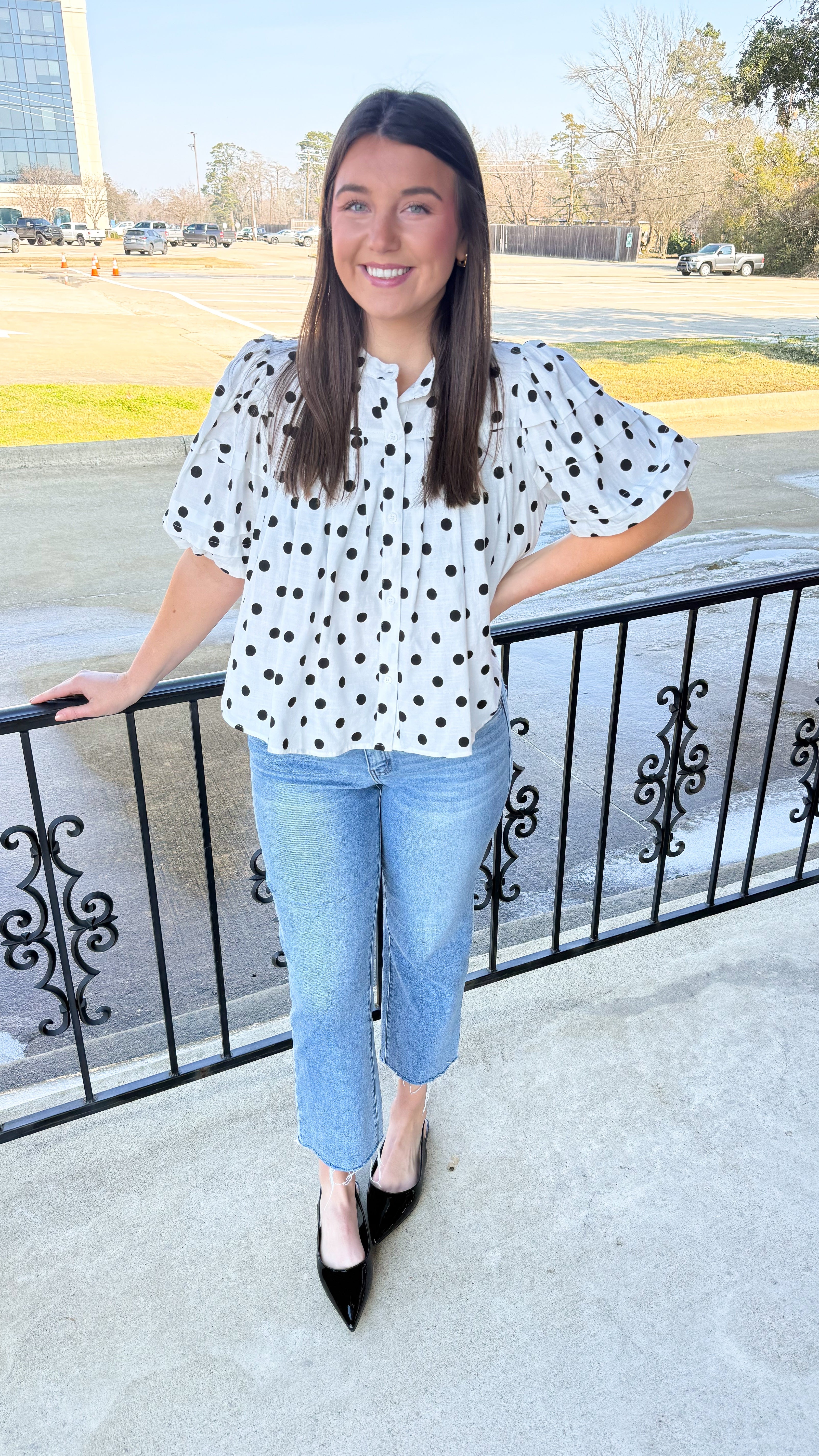 "Into You" Polka Dot Puff Sleeve Top