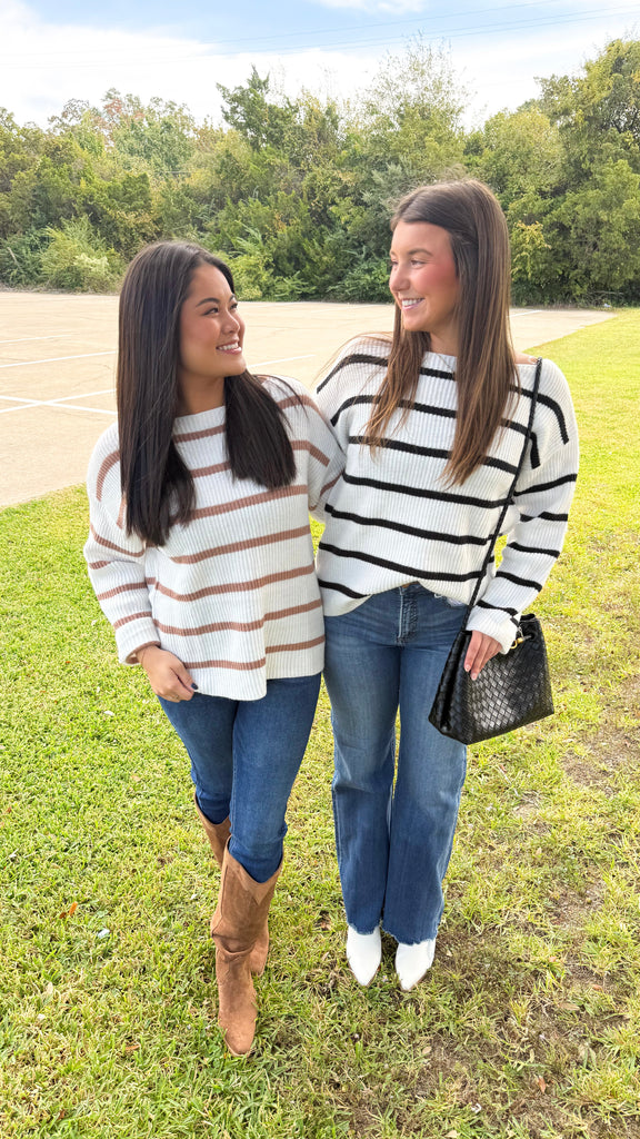 "Set The Bar" Striped Cap Sleeve Sweater Top