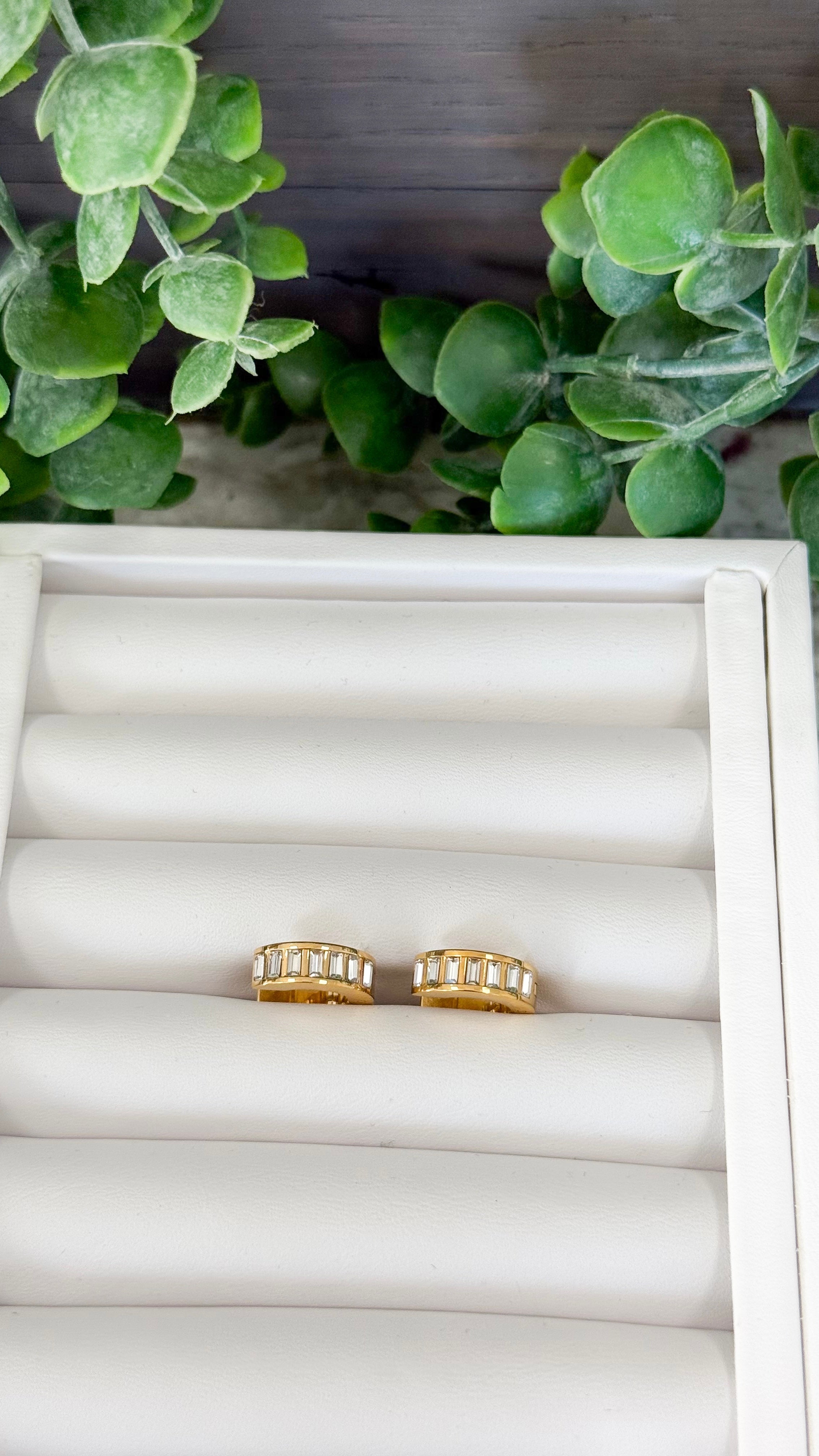The Ashley Earrings from Chansuttpearls are a perfect blend of style and durability. These huggie earrings are lightweight and water-resistant. These earrings feature dainty crystals.