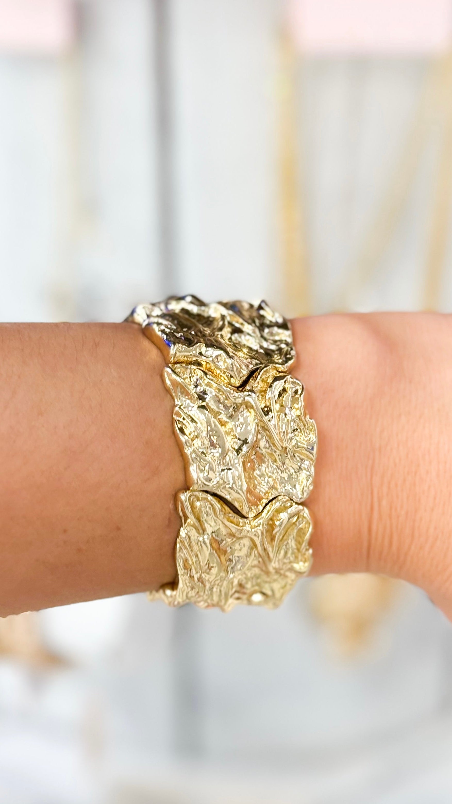 "Find A Way" Gold Hammered Texture Stretch Bracelet