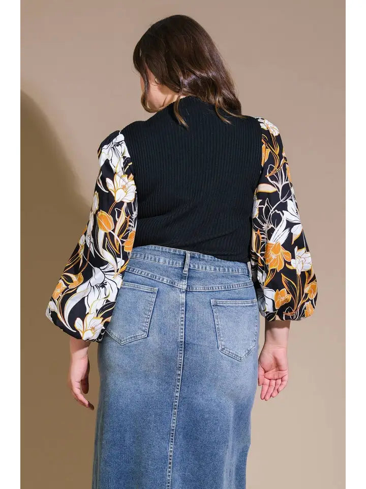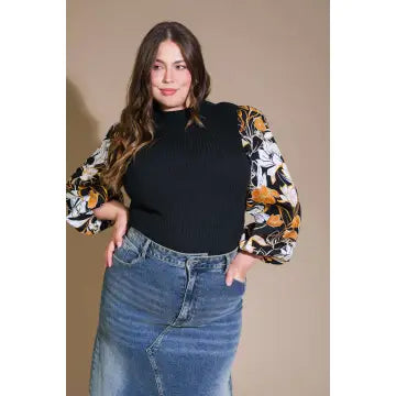 "Imagine It There" Plus Floral Long Sleeve Sweater Top