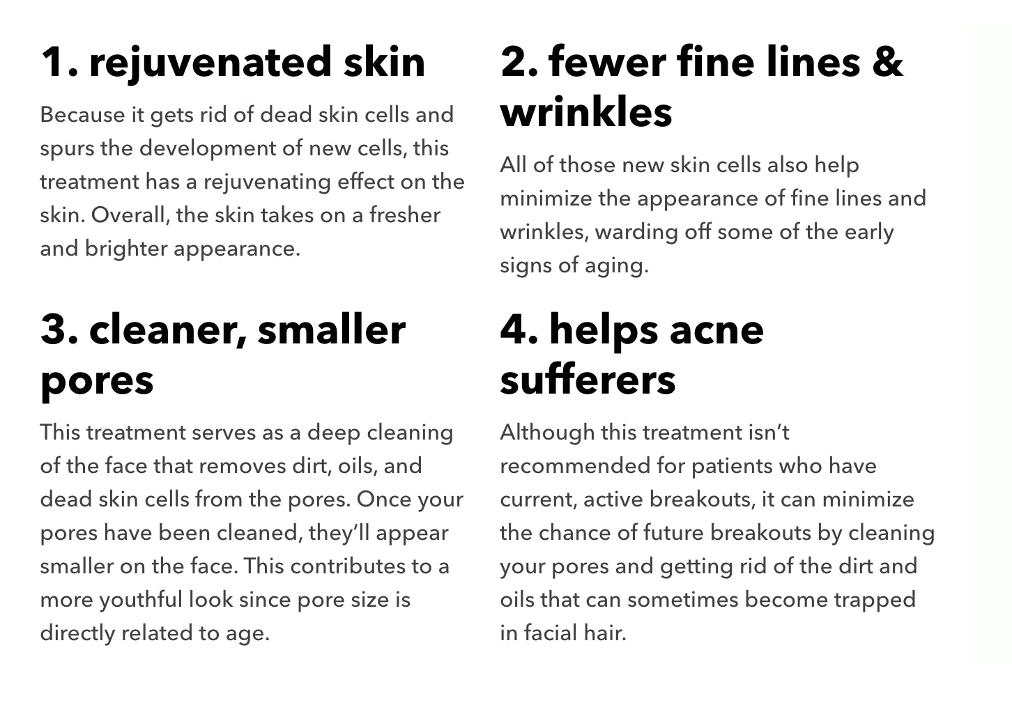 Gently exfoliates facial skin by removing dead skin cells and unwanted hair that can trap dirt and oil Repeat every 3-4 weeks once skin cell rejuvenation is complete. Helps prep the skin for smoother make up application and stronger product absorption for a beautiful glow Stimulates collagen to repair skin irregularities Increases absorption of oils, serums, and moisturizers - stronger product absorption for a beautiful glow that lasts longer. 4 Reasons Why Millions of People are Dermaplaning 1. rejuvenated skin 2. fewer fine lines & wrinkles 3. cleaner, smaller pores 4. helps acne sufferers