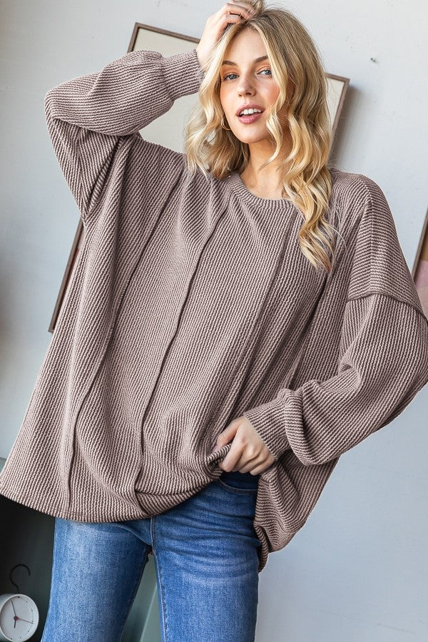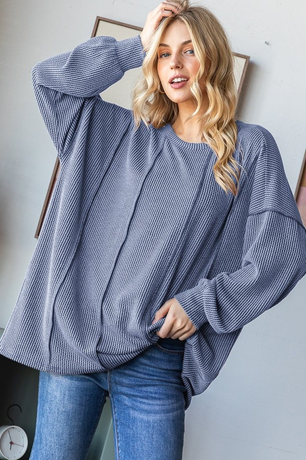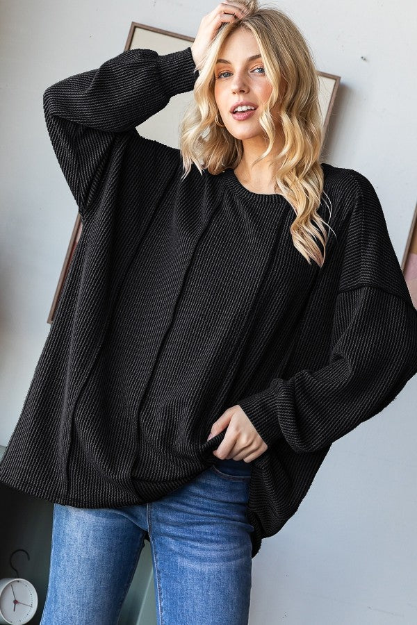 "Look Around" Plus RIbbed Seam Long Sleeve Top