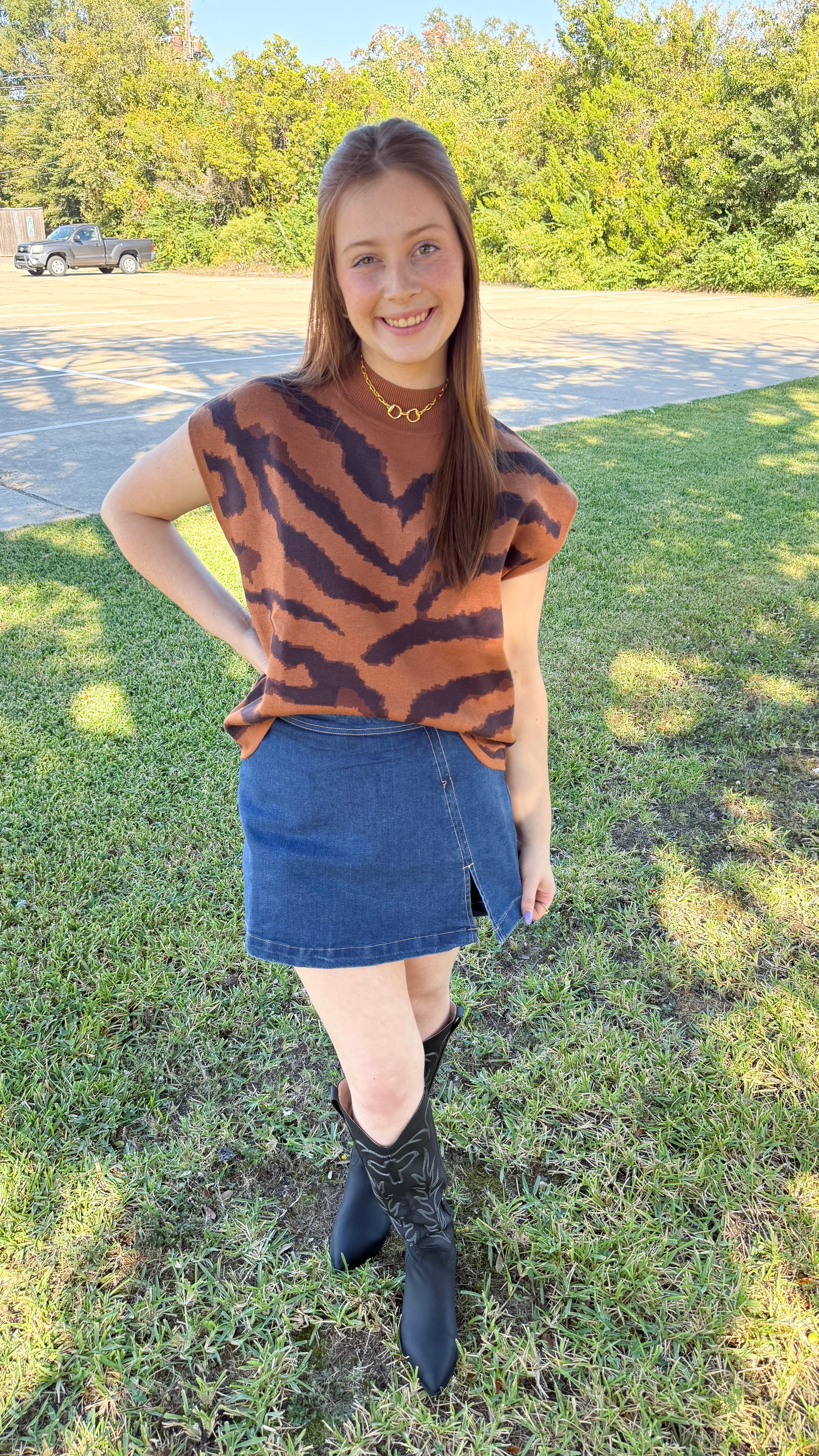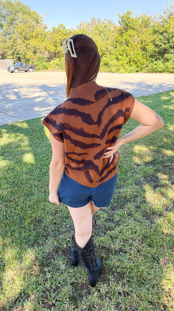 "Not Afraid" Mock Neck Tiger Print Sleeveless Top