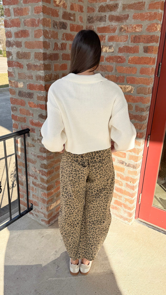 "Nova" Mid Rise Barrel Leopard Twill Pants