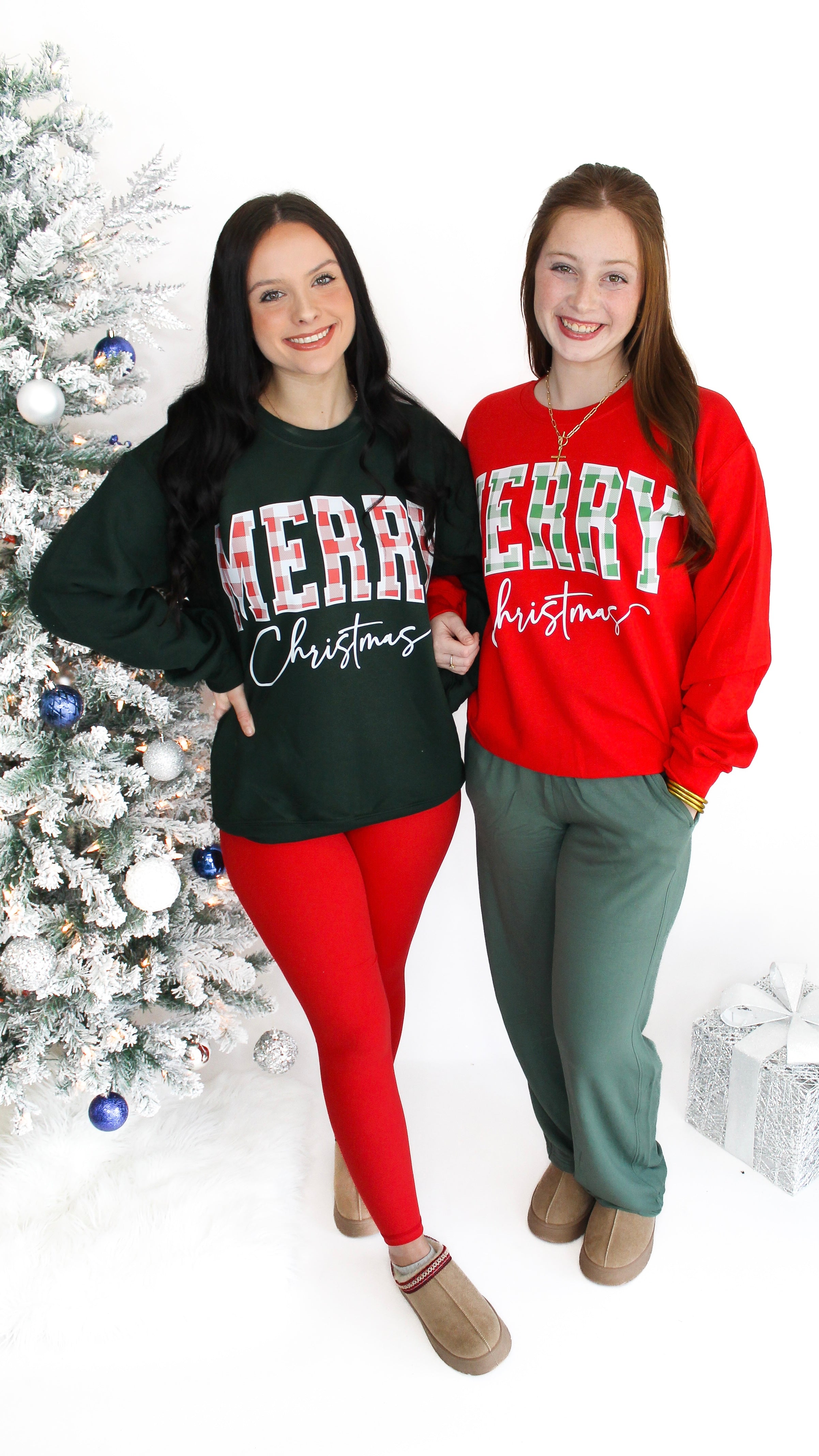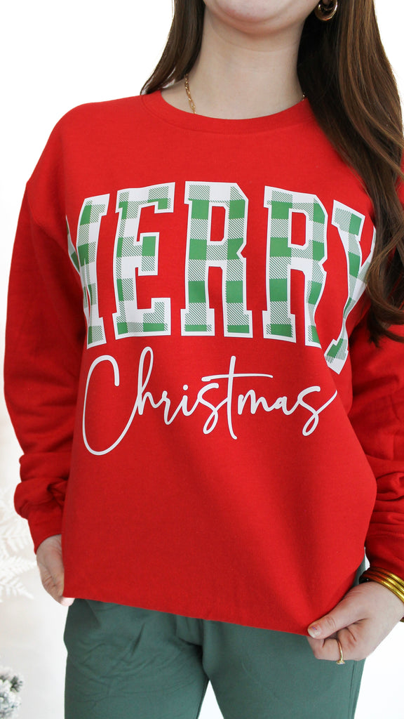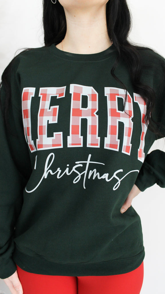 "Plaid Merry" Plus Graphic Long Sleeve Sweatshirt