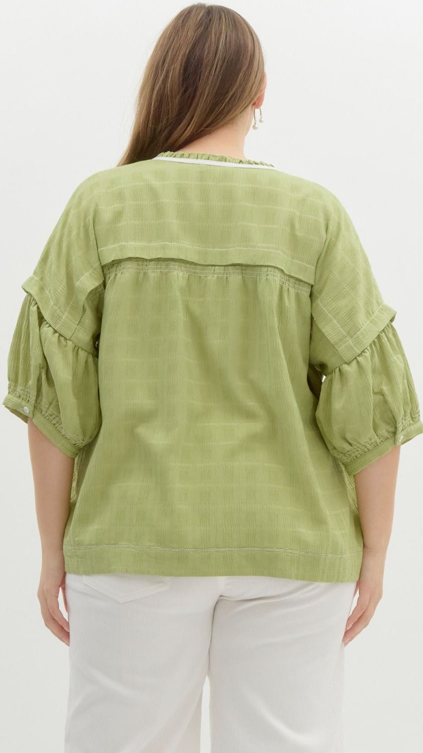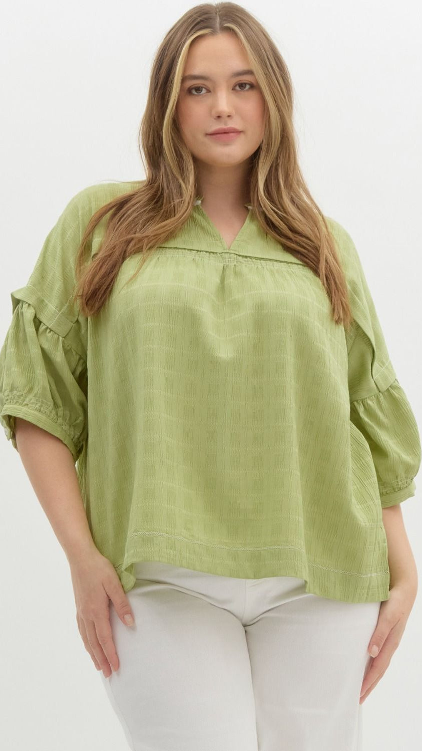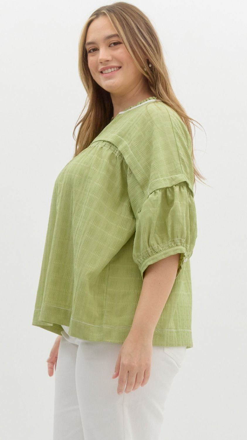 "Starting Something" Plus Textured Short Puff Sleeve Top