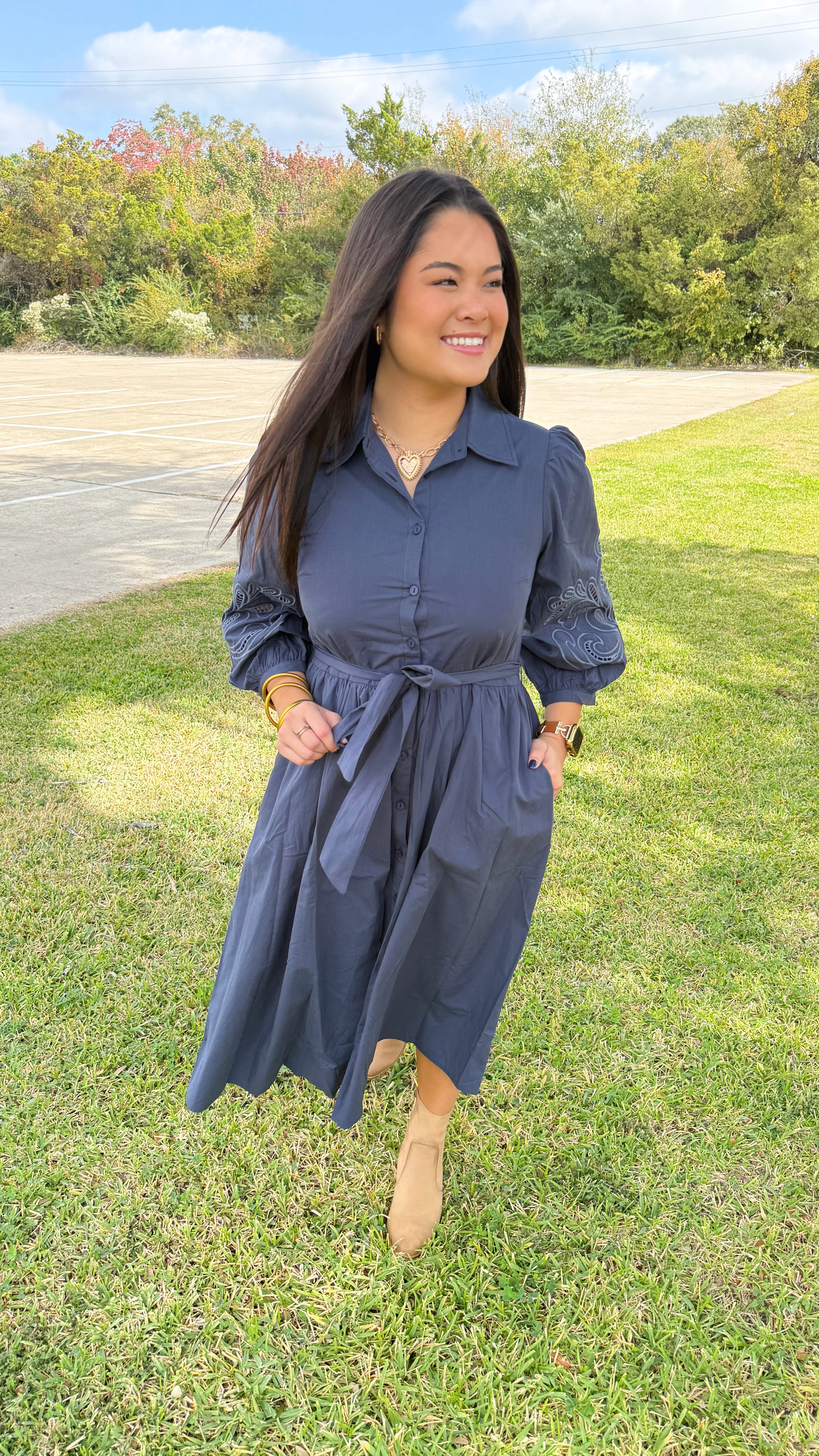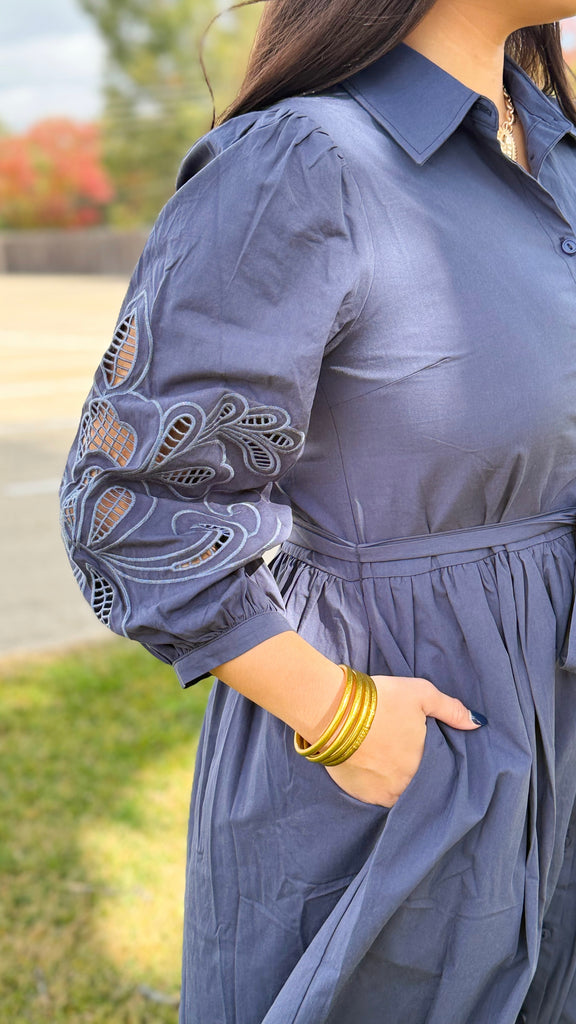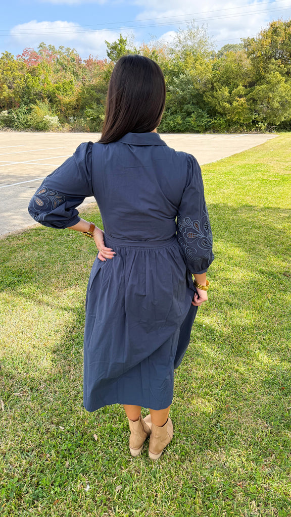 "You Want Forever" Collared Balloon Sleeve Midi Dress